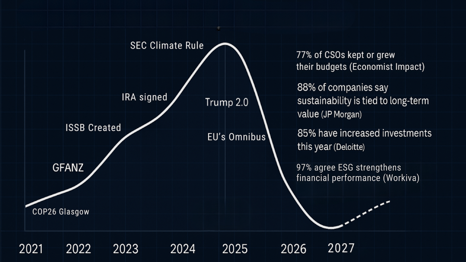 Some have characterized this period as a sustainability recession. Others have said that this year was a “necessary correction” - meaning overly ambitious sustainability aspirations have been replaced by more business-oriented and realistic commitments.